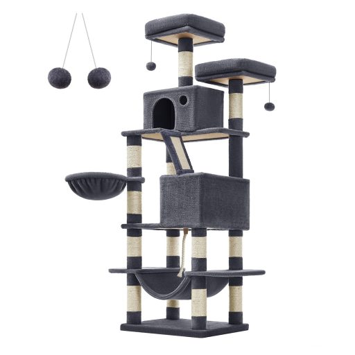 FEANDREA Macska kaparófa, többszintes, pihenőkosárral, sötétszürke 55x45x165cm168 cm magas, végtelen mászási élmény: 168 cm magas. 5 szint, lépcsők közötti rövid távolságok 25-30 cm. Ez az XXL kaparófa nemcsak a magasra mászni szerető macskáknak tökéletes, hanem kiscicáknak és idősebb macskáknak is megfelelő.