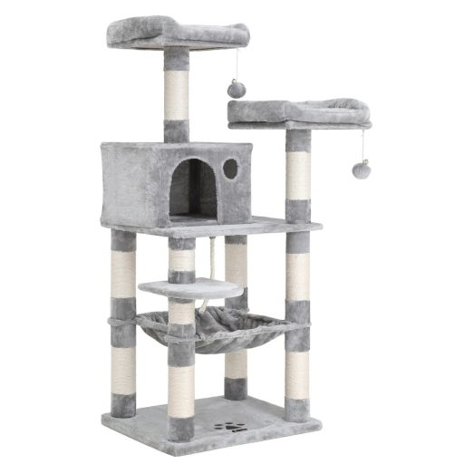 FEANDREA Macska kaparófa, cicaházzal, plüss pihenőhelyekkel, szürke 143x55x45cmMinden szem előtt: A 2 puha, vastagon párnázott kilátóplatformon macskáid tökéletesen rálátnak a lakásodban zajló eseményekre.