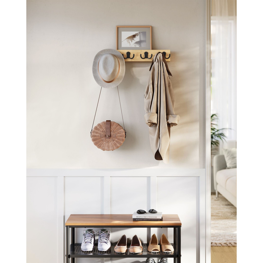 Sokoldalú és stílusos: Ez a falra szerelhető fogas könnyen integrálható az előszobába, nappaliba vagy hálószobába. Természetes bézs színe zökkenőmentesen illeszkedik különböző berendezési stílusokhoz, és otthonossá teszi a helyiséget.