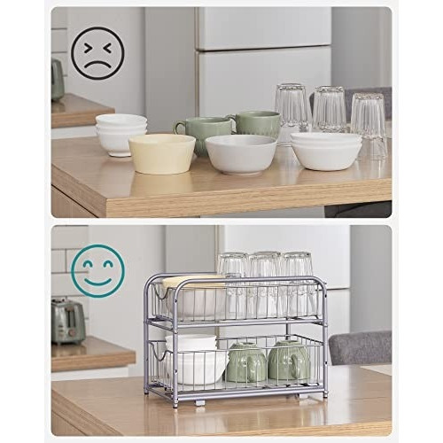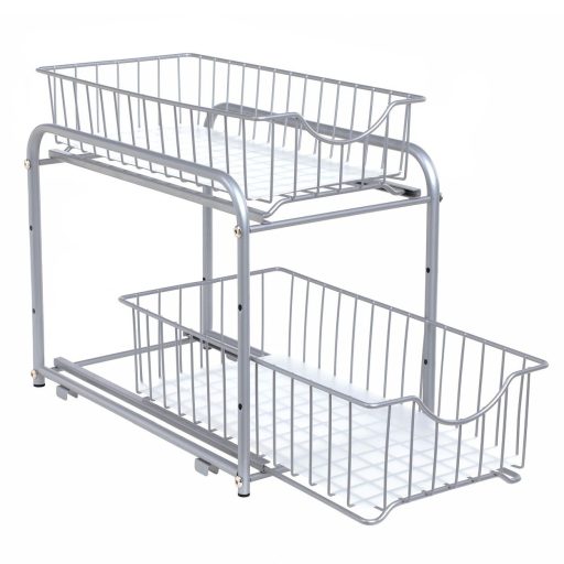 SONGMICS Kétszintes edény és tányérszárító kihúzható, ezüst 36x21x25-31cmSokoldalú: Használja ezt a rendszerezőt tárgyai rendszerezésére, hozzon létre egy kényelmes helyet a mosogatószer számára a mosogató alatt, vagy használja rozsdamentes fürdőszobai polcként szappanok és piperecikkek tárolására. Magas fokú sokoldalúság