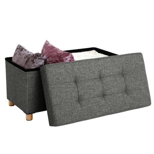 SONGMICS Összecsukható vászon tárolópuff, ottomán, sötétszürke 76x38x38cmIndítson egy új divatot egy új ottománnal: Egy hely az összehajtott ágyneműk tárolására? Egy hely, ahol felteheti a lábát? Ez a pad csak részben végzi el ezeket a feladatokat. A tuftolt Chesterfield stílusa elegáns, és a fa lábak megakadályozzák a közvetlen érintkezést a talajjal, így tisztább tárolást biztosítanak.