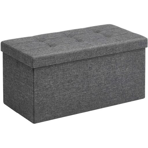 SONGMICS Összecsukható vászon tárolópuff, sötétszürke 76x38x38cmSGS Tanúsítvány - A zsámoly SGS tanúsítvánnyal rendelkezik, maximális teherbírása akár 300 kg, bízzon ebben a jelben