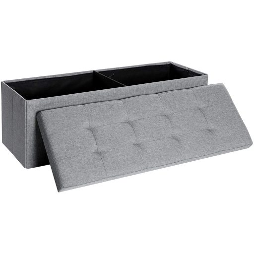 SONGMICS Összecsukható vászon tárolópuff, szürke 110x38x38cmFigyelemfelkeltő Tároló Puff: A modern világosszürke szín és a Chesterfield-stílusú gombokkal díszített, kényelmesen kárpitozott ülés bármelyik szobában figyelemfelkeltővé teszi ezt a padot, miközben lenyűgöző funkcionalitással és 300 kg-os statikus teherbírással rendelkezik.