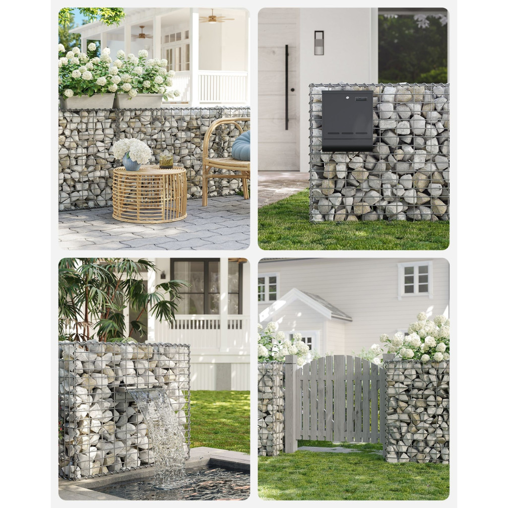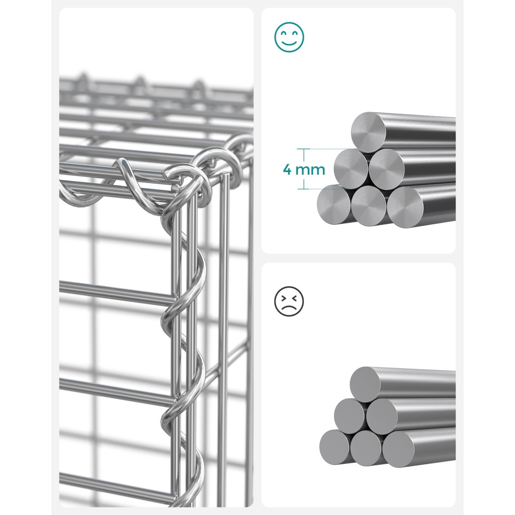 SONGMICS Gabion rács, galvanizált acél hálóval 100x80x30cm 4 mm átmérőjű acél, masszívabb: 4 mm átmérőjű horganyzott acélból készült, ez a gabion kosár robusztus, masszív, valamint rozsda- és korrózióálló, hogy szezonról szezonra díszítse kertjét.