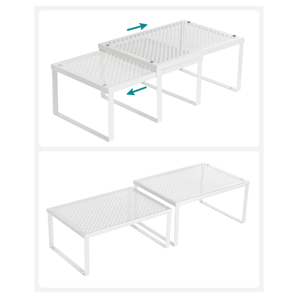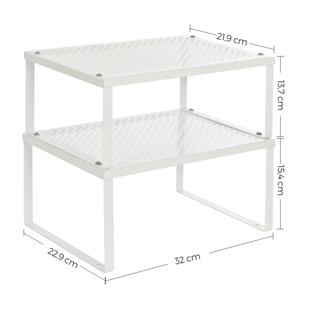 SONGMICS Konyhai rendszerező polc, 2 db-os egymásra rakható, fehérCsomag tartalma: Két szett két konyhai szekrény polccal, amelyek segítenek a kis tárgyakat távol tartani a konyhapultoktól vagy elrejteni, így most rendezettek és könnyen megtalálhatók.