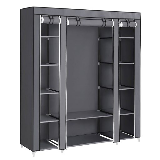 SONGMICS Szövet ruhatároló szekrény hordozható gardrób, ruhaakasztóval, szürke 150x45x175cmNagy Kapacitás: Ez a szövet gardrób 45 x 150 x 175 cm méretű, elegendő helyet biztosítva az összes ruhád számára. Az akasztórúd 132 cm magas, így hosszú ruhák, például kabátok és téli dzsekik is elférnek rajta.