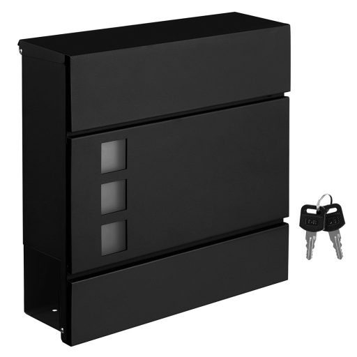 Mit kap? Egy falra szerelhető, robusztus postaládát fedéllel, zárral, két kulccsal, betekintő ablakokkal, szerelési tartozékokkal és egy elegáns megjelenéssel, amely egy csipetnyi bájt és újdonságot ad külső ajtajának.