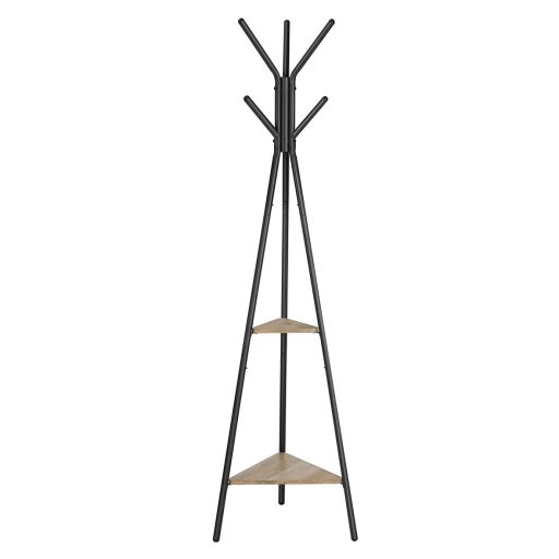 VASAGLE Álló ruhafogas polcokkal és akasztókkal, greigeImádni fogja! Nincs hova rendezni a kanapéra dobott rendetlen ruhákat? Ez a fogas segít kijutni ebből a káoszból! Egyszerű háromszög alakú sziluettel állva, ez az állvány 6 elegáns kampóval és két masszív polccal büszkélkedhet—tartsa rendben a dolgokat