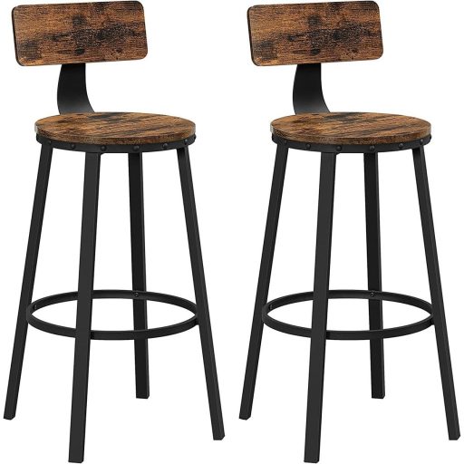 VASAGLE Bárszék 2 db magas konyhai étkező szék, rusztikus barna, 73 cm ülésmagasságRusztikus bájban fürdőzve: Meleg barna megjelenésükkel, elegáns fekete acéllal és szegecses részletekkel ezek a magas székek az ipari stílust testesítik meg, és egyedi hangulatot kölcsönöznek a konyhaszigetnek vagy a bárpultnak.