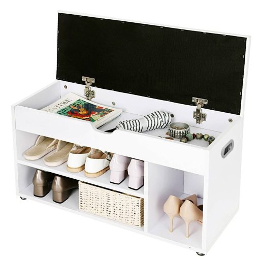 VASAGLE Cipőtároló pad, párnázott ülőfelülettel, fehér 80x44x30cmNincs több ugrálás. Igazán kényelmetlen mindig egy lábon ugrálni a lakásban, amikor cipőt húzunk. Miért ne ülnél le erre a cipőpadra? Helyezd el az előszobádban, és nyugodtan vedd fel a sportcipődet. E1 osztályú faforgácslapból készült, ez a pad akár 150 kg súlyt is elbír, és az ülés 4 cm vastag habbal van párnázva.