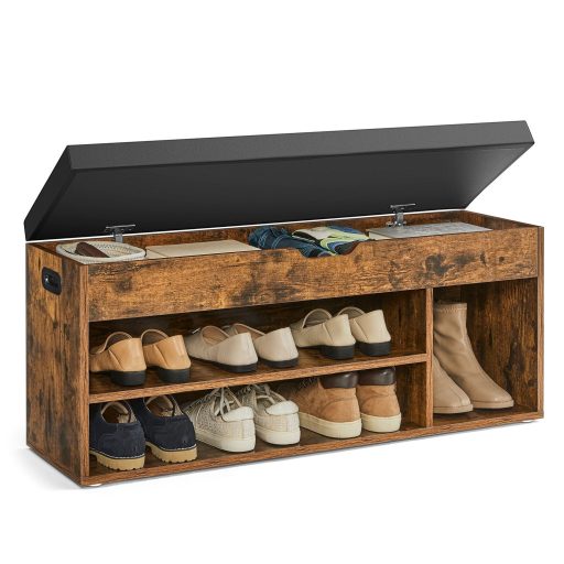 VASAGLE Cipőtároló pad, párnázott ülőfelülettel, felnyitható, rusztikus barna 100x30x44cmSokoldalú Felhasználás: Emelje fel otthonát egy sokoldalú cipőspaddal! Ideális kollégiumokba, lakásokba, folyosókra, előszobákba vagy hálószobákba, ez a tárolópad zökkenőmentesen illeszkedik otthoni dekorációjához, és rendezetten, hívogatóan tartja otthonát.