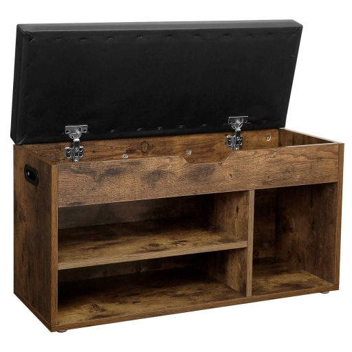 VASAGLE Cipőtároló pad, párnázott ülőfelülettel, rusztikus barna 80x44x30cmNe támaszkodj a falnak: Bosszantó ugrálni és billegni, miközben a falnak támaszkodva próbálod felvenni a cipődet indulás előtt. Miért ne ülnél le? A tervezett fa szerkezet akár 150 kg-ot is elbír, és a 4 cm vastag puha párna lehetővé teszi, hogy kényelmesen leülj és felvedd vagy levegyed a cipődet.