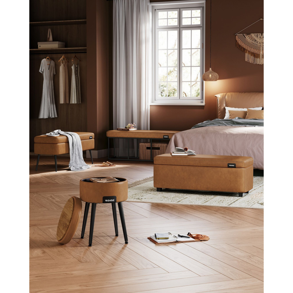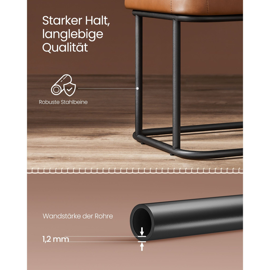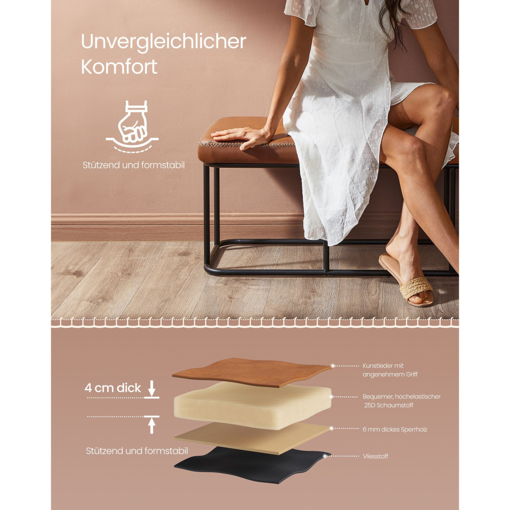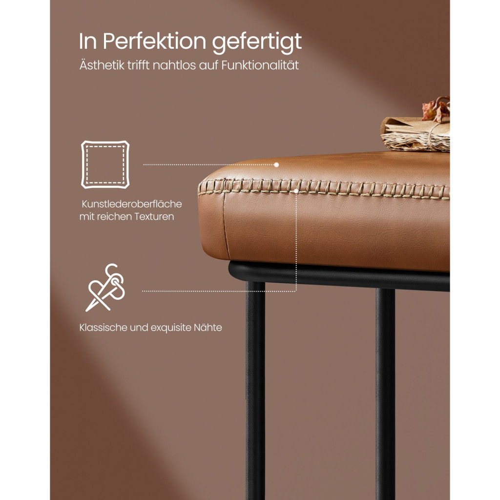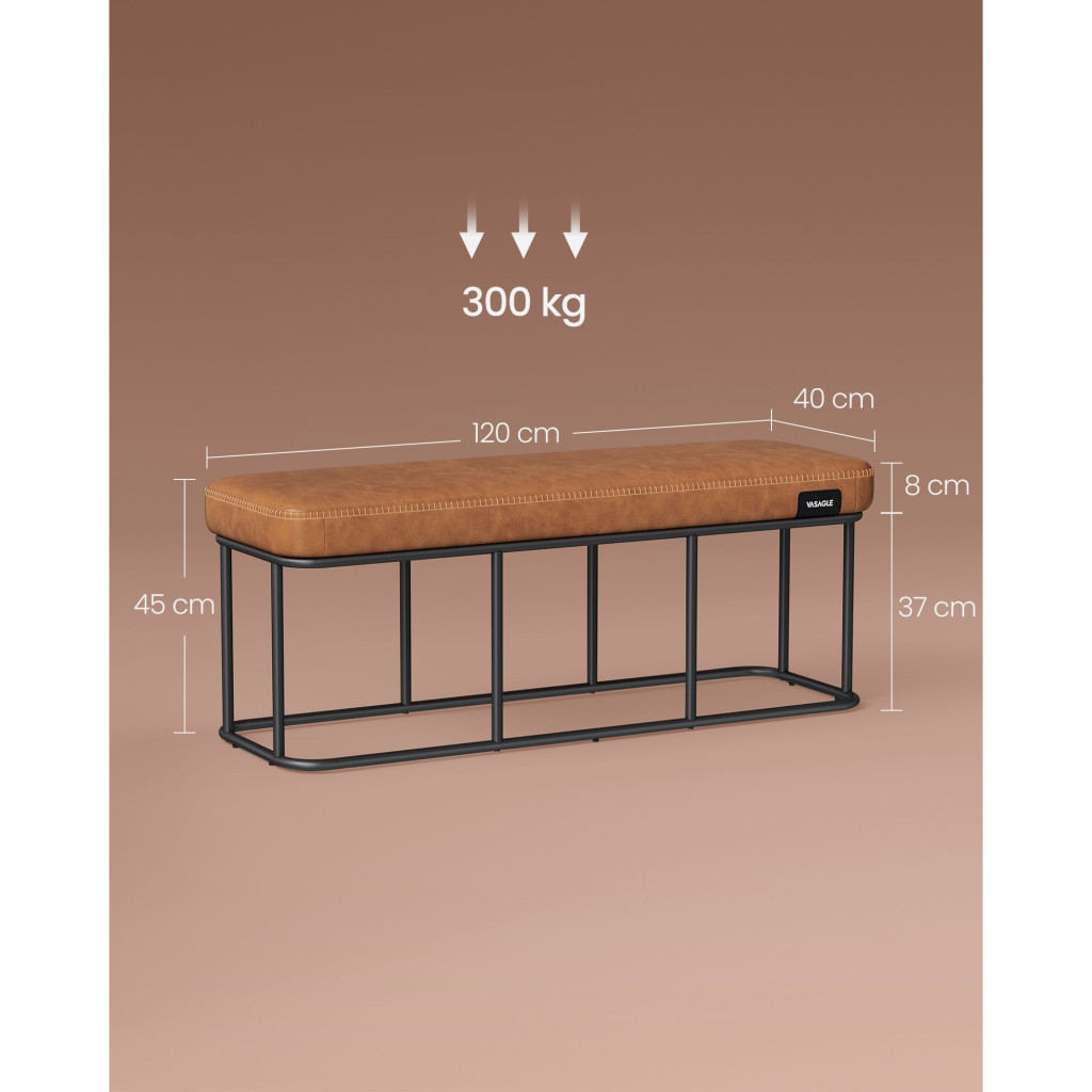 VASAGLE ECHO pad műbőr borítással acél vázzal, karamellbarna 40x120x45cmFokozza a teret: Fedezze fel a VASAGLE EKHO kollekció előszobapadját, ahol a szintetikus bőr találkozik a kifinomult varrással. Finoman ívelt élei a biztonságot helyezik előtérbe, míg a karcsú fém vonalak hozzájárulnak a térérzet növeléséhez.