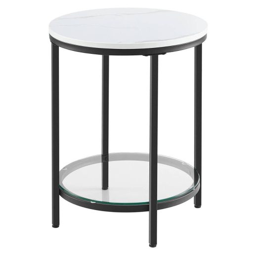 VASAGLE Kerek lerakóasztal edzett üveglappal, feketeLenyűgöző minimalizmus: Emeld otthonodat egy teljesen új szintre ezzel a modern konzolasztallal. Az arany színű fémkeret és az edzett üveg polcok egy minimalista és praktikus bútordarabot alkotnak.