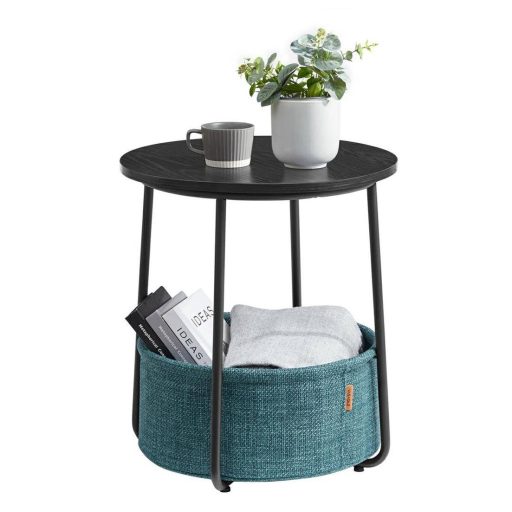 VASAGLE Kerek lerakóasztal szövet kosárral, türkiz és fekete 45×51cmGyors és Könnyű Összeszerelés: Az egyszerű szerkezetnek és az egyértelmű utasításoknak köszönhetően ez az oldalasztal 5-10 perc alatt összeszerelhető