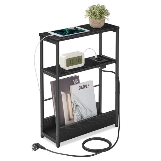 VASAGLE Keskeny lerakóasztal, éjjeli szekrény, 3 szintes, beépített elosztóval, fekete 45x18x58cmKeskeny helyekhez alkalmas: Az 18 x 45 x 58 cm méretű, helytakarékos, 3 szintes dohányzóasztal tökéletesen illeszkedik a kanapé vagy az ágy melletti kis helyekre, maximálisan kihasználva a rendelkezésre álló teret.