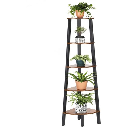 VASAGLE Könyvespolc, álló polc, rusztikus barna 34x34x158cmIpari Elegancia: Rusztikus fa a farmház klasszikusához, merev acél az ipari sikkhez, most egyesülnek ezen a sarokpolcon, hogy otthonába a múlt finom antik érintését hozzák