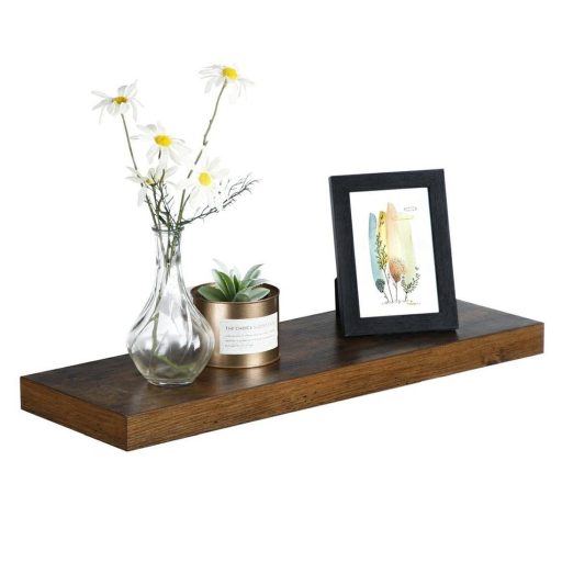 VASAGLE Lebegő fali polc, rusztikus barna 60x20x3cmSzeretett dekorációkhoz: Törölje le a port szeretett családi fotóiról, és adjon nekik egy helyet, ahol ragyoghatnak ezen a lebegő fali polcon. 60 cm hosszú és akár 10-15 kg-ot is elbír, így kedvenc könyvei, dekorációi, CD-i, fűszerei és még sok más szépen kiállítható