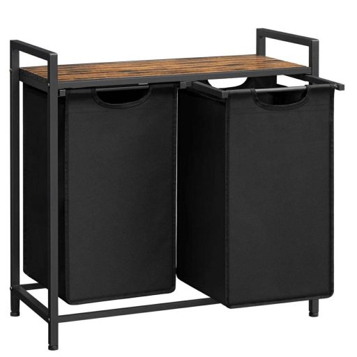 VASAGLE Szennyestartó, kihúzható és levehető ruhatartó zsákkal 2x46L, feketeTartsd rendben a szennyes ruhákat: Ez a szennyestartó két oxford szövet zsebbel rendelkezik, amelyek segítenek külön tárolni az ágyneműt és a ruhákat, vagy szín szerint szétválogatni a ruhákat
