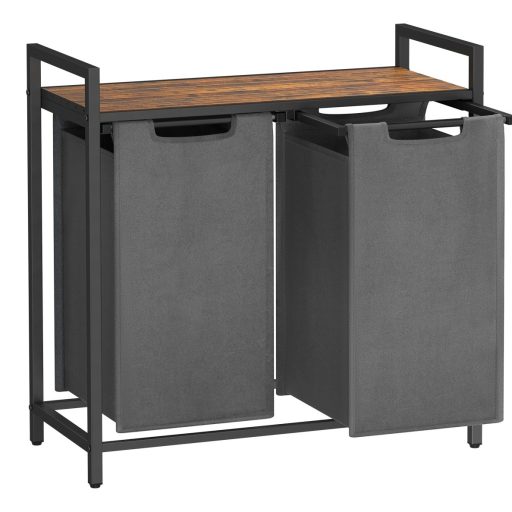 VASAGLE Szennyestartó, kihúzható és levehető ruhatartó zsákkal 2x46L, szürkeSzortírozd a szennyest: Ez a szennyestartó két Oxford szövetből készült zsákkal rendelkezik, amelyek segítenek külön tárolni az ágyneműt és a ruhákat, vagy szín szerint szortírozni a szennyest.