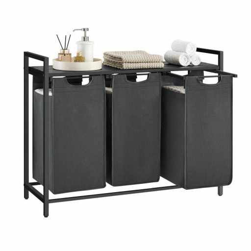 VASAGLE Szennyestartó, kihúzható és levehető ruhatartó zsákkal 3x38L, fekete3 Rekeszes Tárolás: A szennyestartó összkapacitása 114 liter, minden egyes bélés 38 litert képes befogadni. A 3 rekeszes kialakítás lehetővé teszi, hogy a szennyest típus szerint rendszerezze, és különválassza a világos és sötét ruhákat.