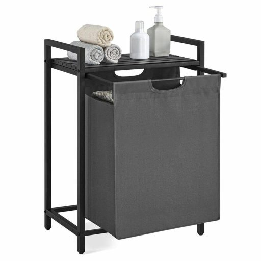 VASAGLE Szennyestartó, kihúzható és levehető ruhatartó zsákkal, szürkeEgykosaras Kis Helyekhez: Ez az egykosaras, 65 literes szennyestartó egy személy egyheti szennyesét képes tárolni. Méretei 50 x 33 x 72 cm, így ez a kompakt kosár tökéletes a kis helyek és sarkok maximális kihasználásához a fürdőszobában, mosókonyhában vagy hálószobában.