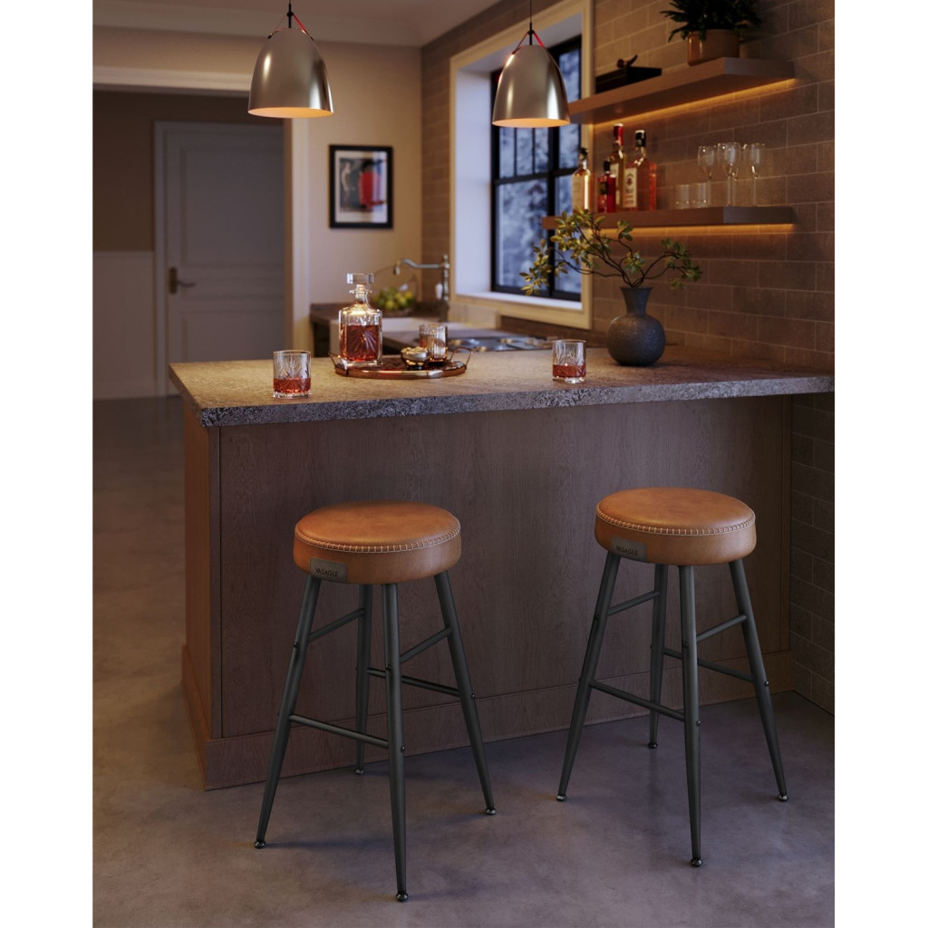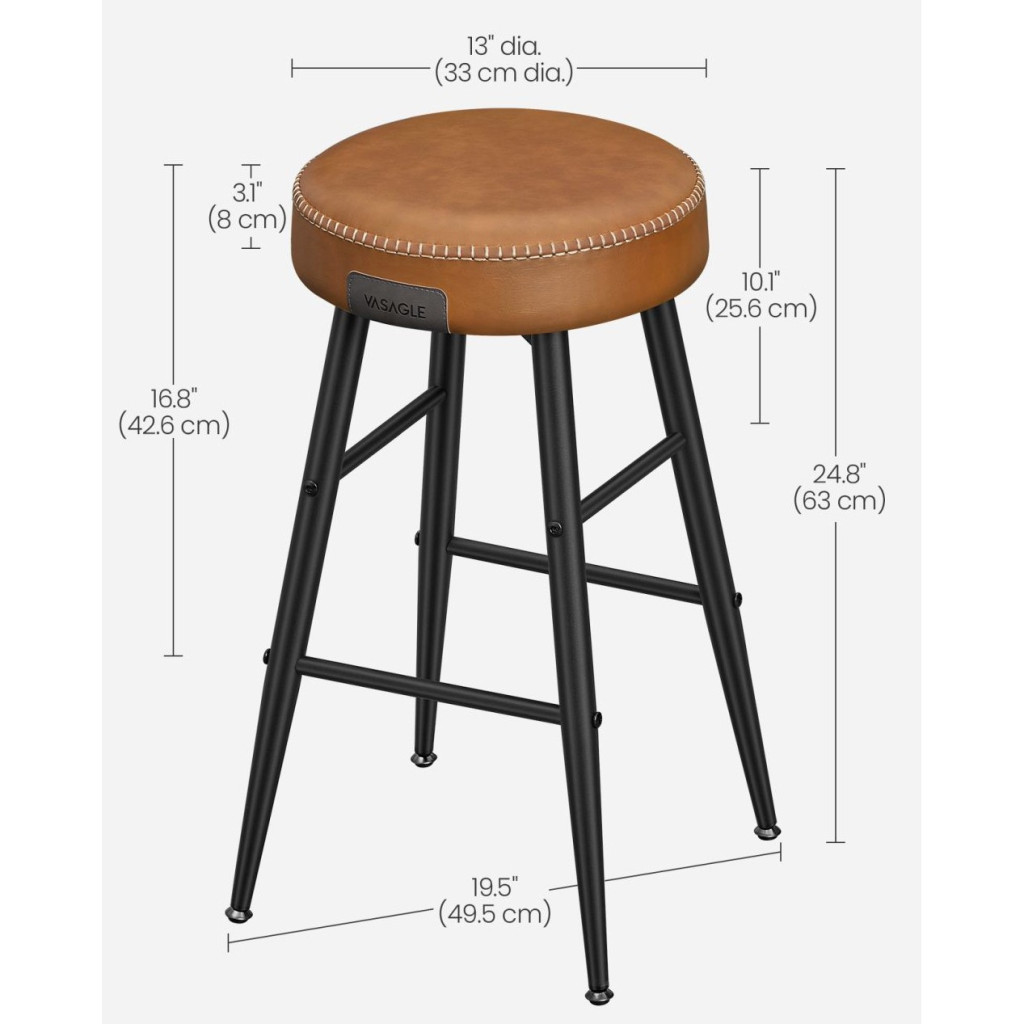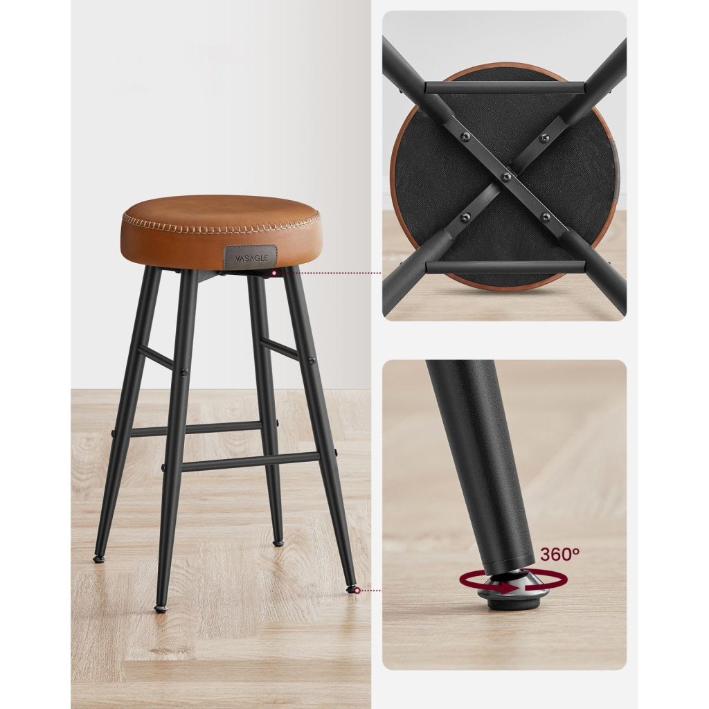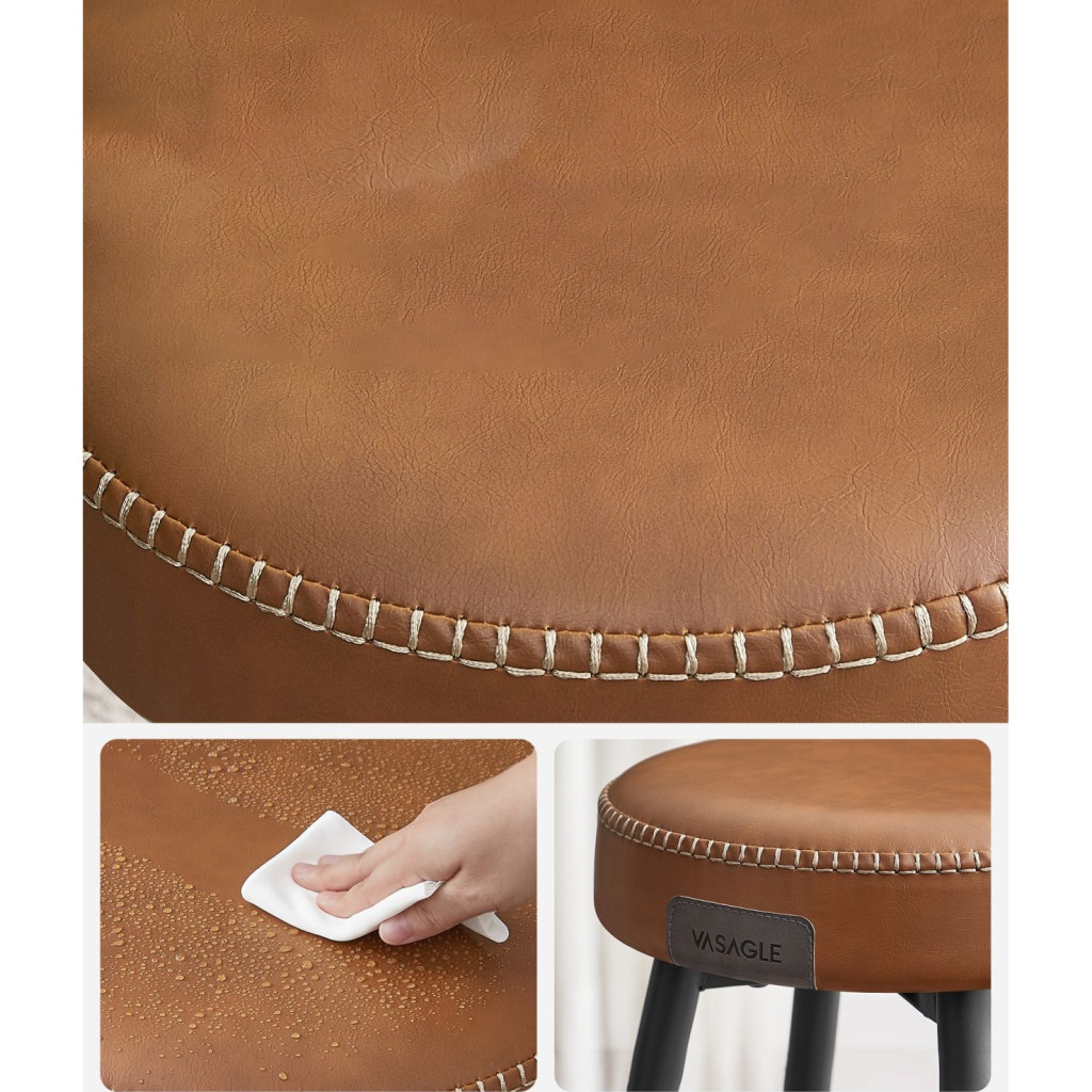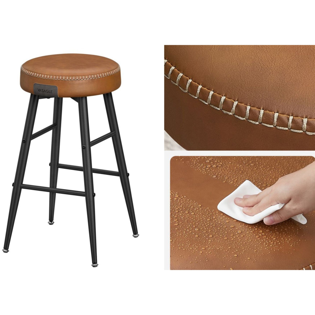VASAGLE ECHO Bárszék 2 db, varrott műbőr borítás, barna, 63 cm magasEmeld a Teret: Tapasztald meg a műbőr, a kifinomult varrás és az elegáns, kúpos lábak vonzó keverékét ezekben az ECHO Kollekció bárszékekben, amelyek kézzelfogható tisztelgést jelentenek a kézművesség szelleme előtt, és új magasságokba emelik otthonod kifinomultságát.