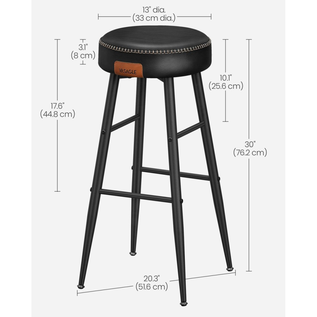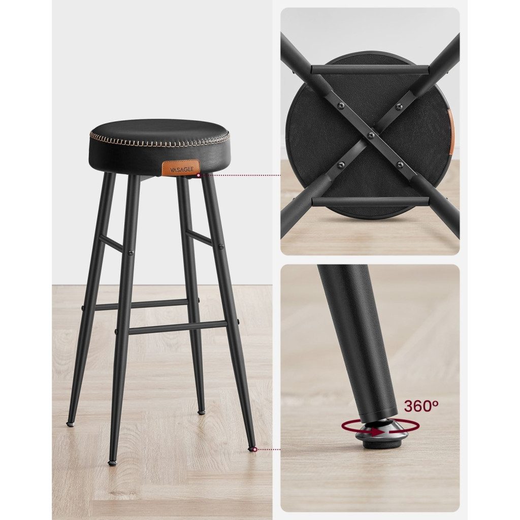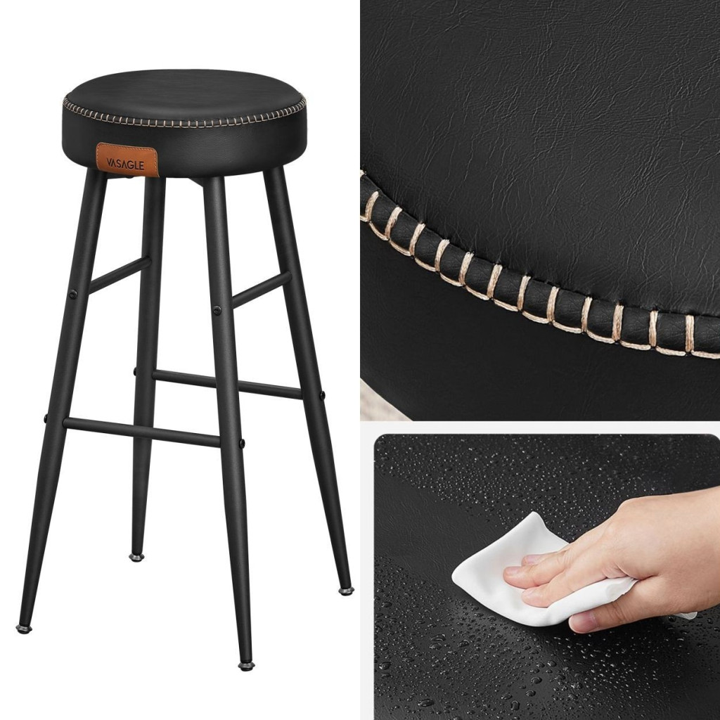 VASAGLE ECHO Bárszék 2 db, varrott műbőr borítás, fekete, 76 cm magasEmeld a Teredet: Tapasztald meg a műbőr, a kifinomult varrás és az elegáns, kúpos lábak vonzó keverékét ezekben az ECHO Kollekció bárszékekben, amelyek kézzelfogható tisztelgést jelentenek a kézművesség szelleme előtt, és új magasságokba emelik otthonod kifinomultságát.