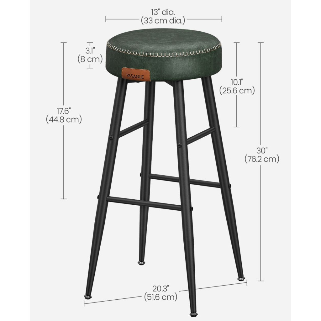VASAGLE ECHO Bárszék 2 db, varrott műbőr borítás, zöld, 76 cm magasEmeld a Teredet: Tapasztald meg a műbőr, a finom varrás és az elegáns, kúpos lábak csábító keverékét ezekben az ECHO Kollekció bárszékekben, amelyek kézzelfogható tisztelgést jelentenek a kézművesség szelleme előtt, és új magasságokba emelik otthonod kifinomultságát.