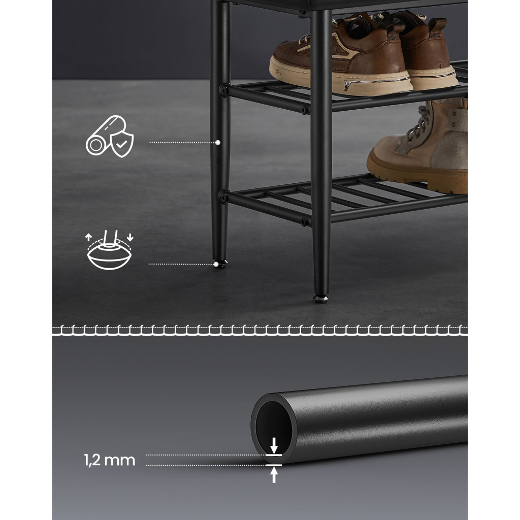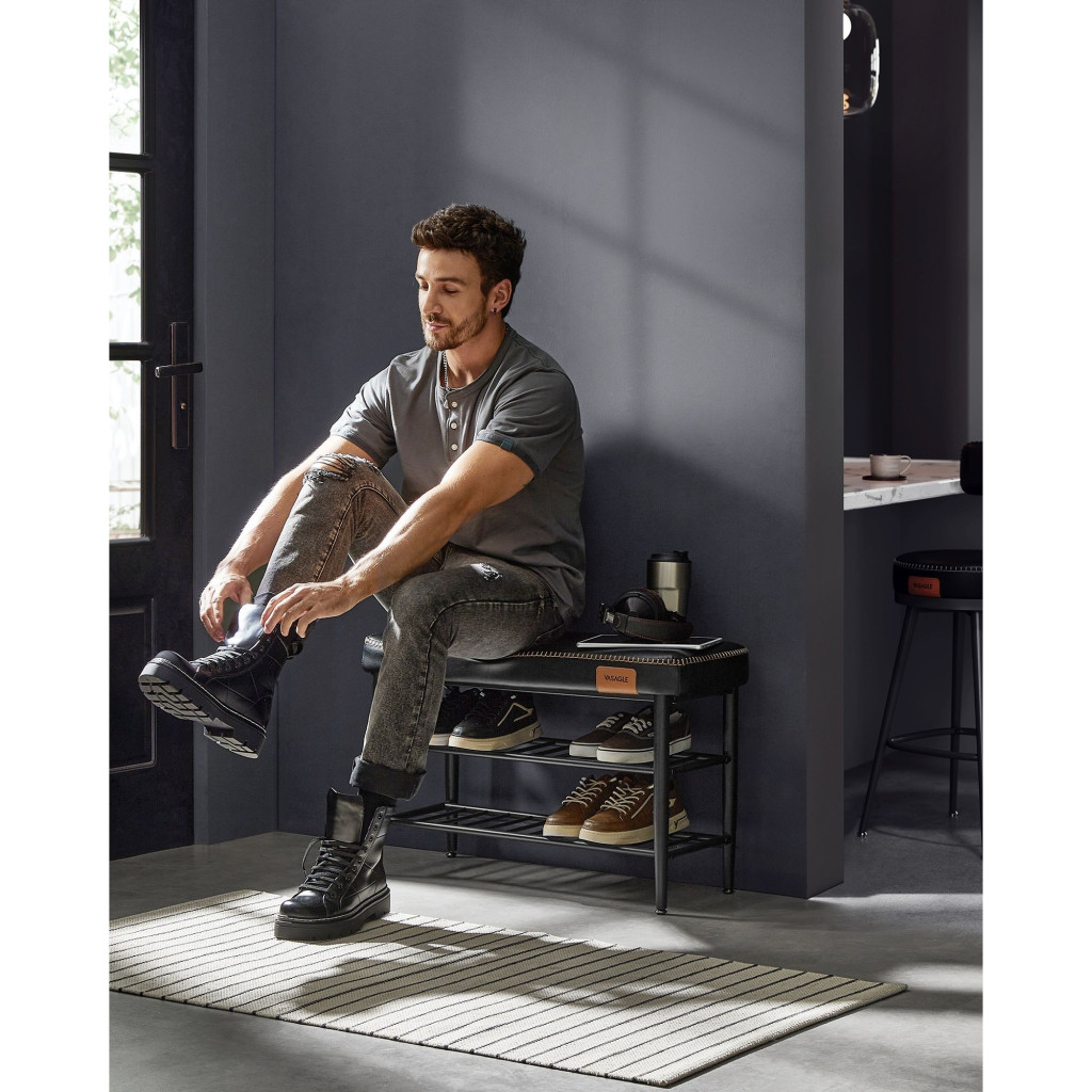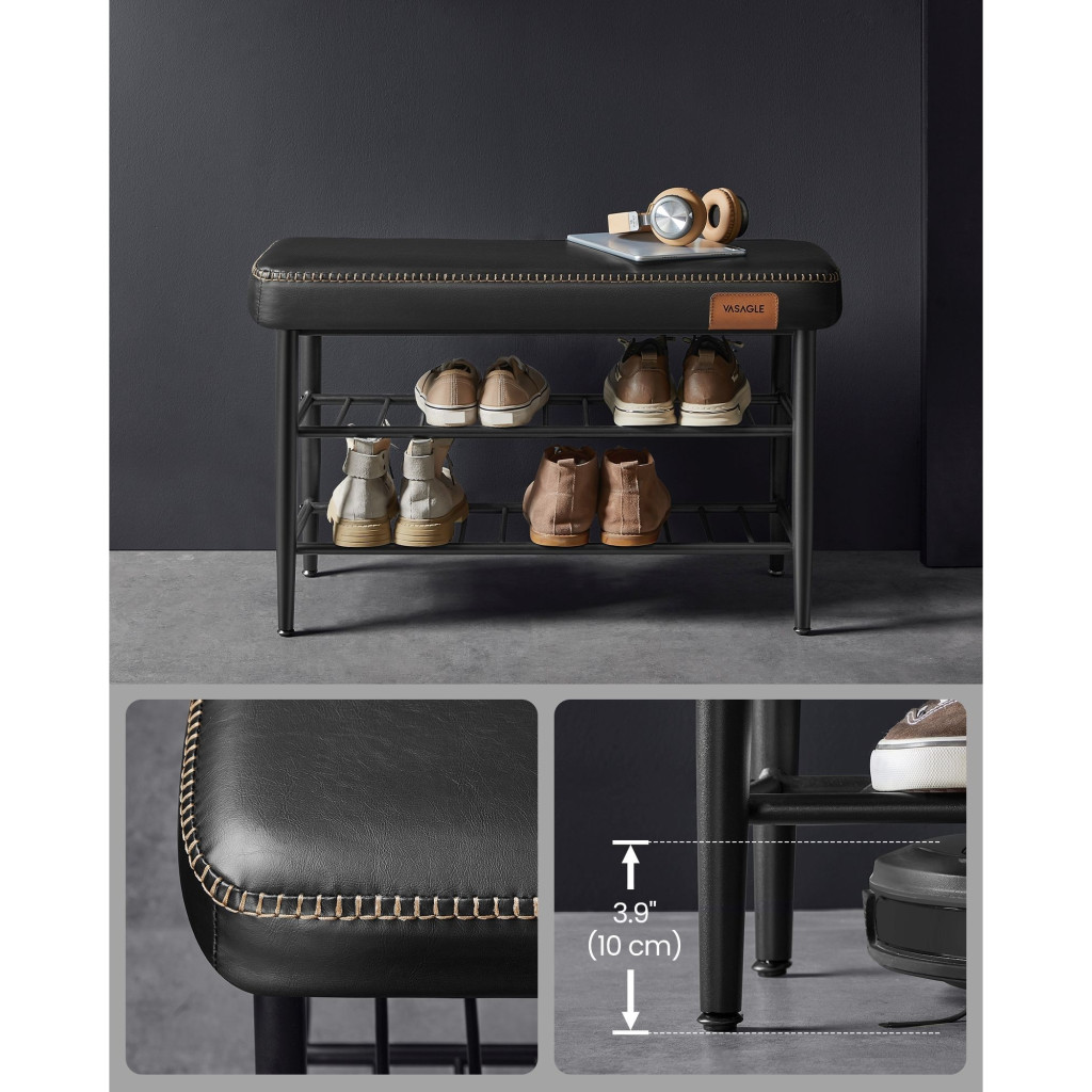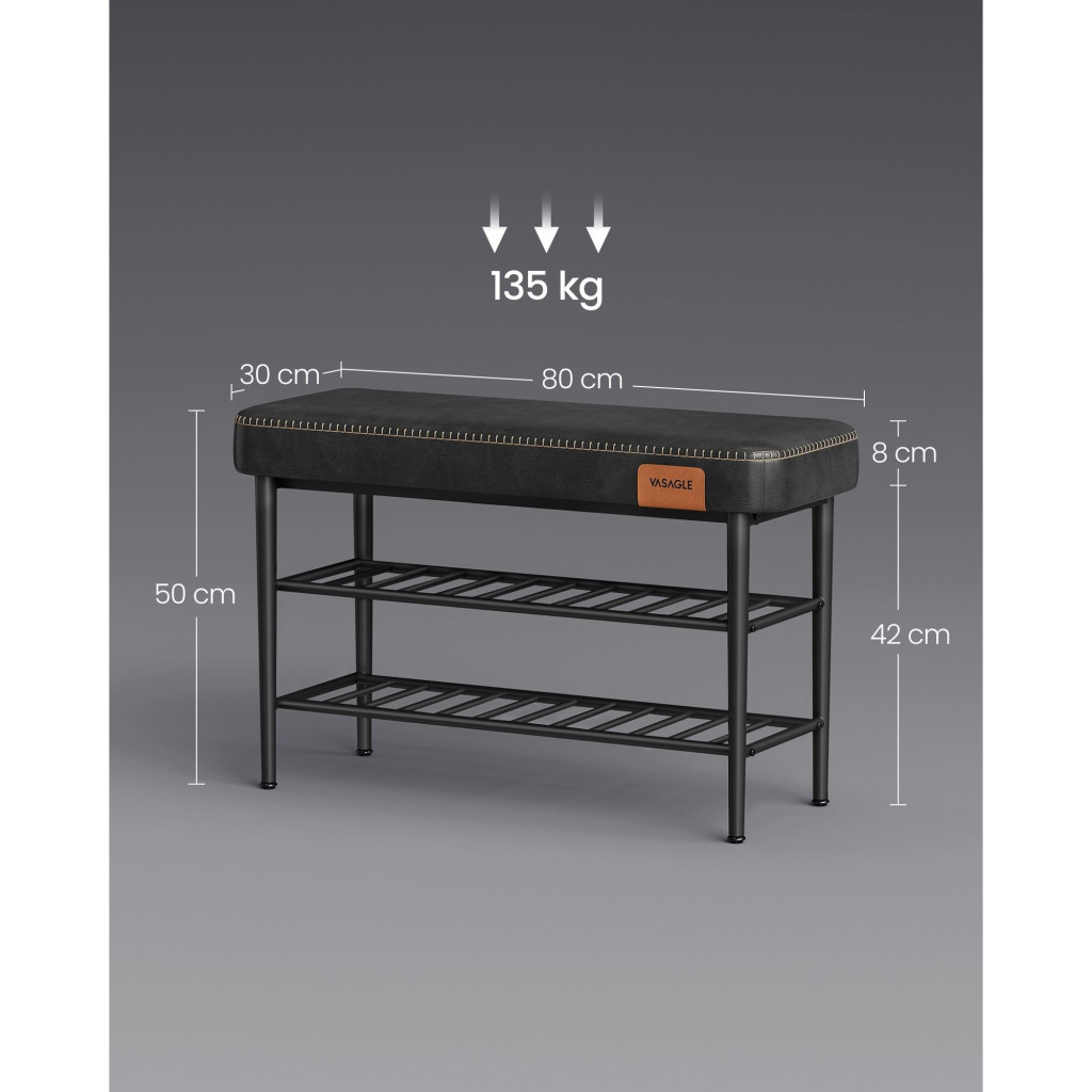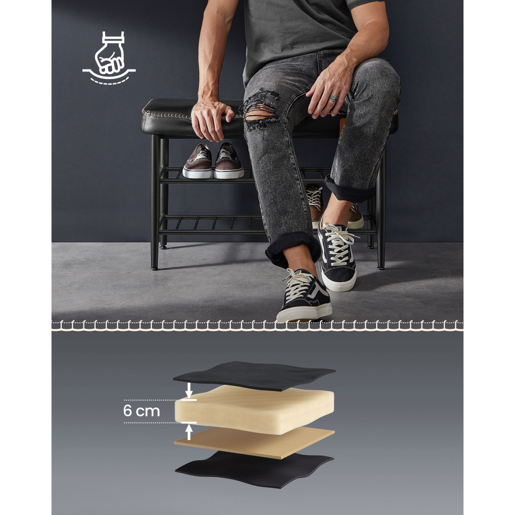 VASAGLE ECHO cipőpad 2 szintes, műbőr borítás, fekete, 30 x 80 x 50 cmKényelmes minden alkalommal, amikor leülsz: Csússz át a sima huzaton, majd süppedj bele a 8 cm vastag, rendkívül rugalmas 25D habba, amely soha nem deformálódik. Ez a pad kiváló ülőhelyet biztosít, amely kiállja az idő próbáját.
