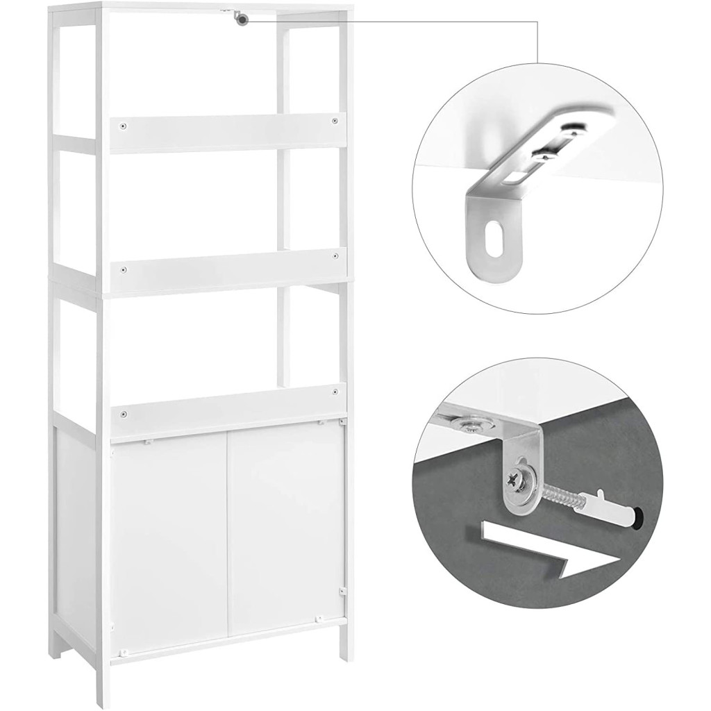 VASAGLE Álló fürdőszoba szekrény fiókkal és szerkénnyel, 3 polccal, fehér, 60 x 32 x 154 cmTöbbféle fürdőszobai tárolási lehetőség: Helyezze a törölközőket a nyitott polcra, a tisztítószereket a fiókba, és a testápolókat az alsó szekrénybe – minden, amire szüksége van, kézben tartható, így nem kell kapkodva kezdenie a napot.