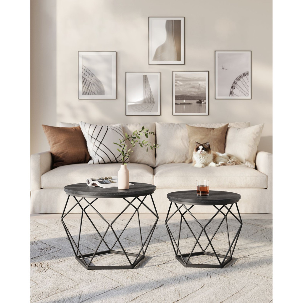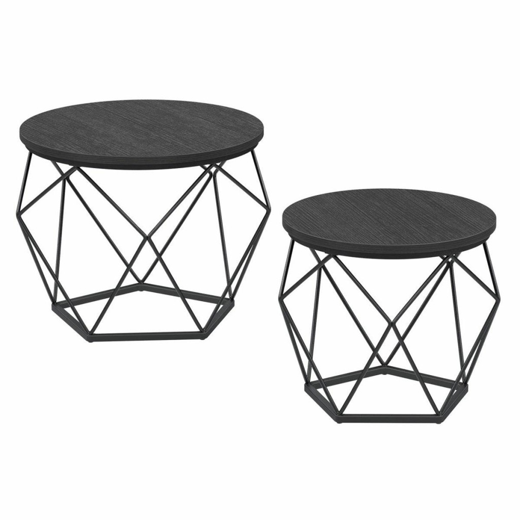 Modern Stílus: Ezek a modern stílusú dohányzóasztalok a nappalijában különleges hangulatot kölcsönöznek a térnek a kerek fekete asztallapokkal és geometrikus fekete acél alapokkal. Vonzó megjelenésük lenyűgözi vendégeit'