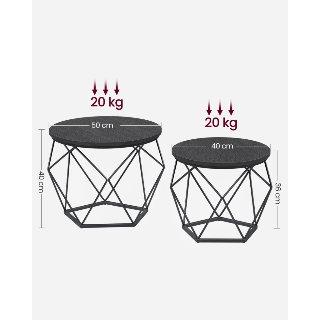 VASAGLE 2 darabos dohányzóasztal szett, fekete 50x50x40cm'[Kompakt Méret] A nagy dohányzóasztal mérete 50 x 40 cm (Átm. x M), a kis dohányzóasztal mérete pedig 40 x 36 cm (Átm. x M); a kompakt méret, amely alkalmas kis terekbe, lehetővé teszi, hogy megtalálja a megfelelő helyet a délutáni teához, dekorációkhoz vagy egy laptophoz a munkához